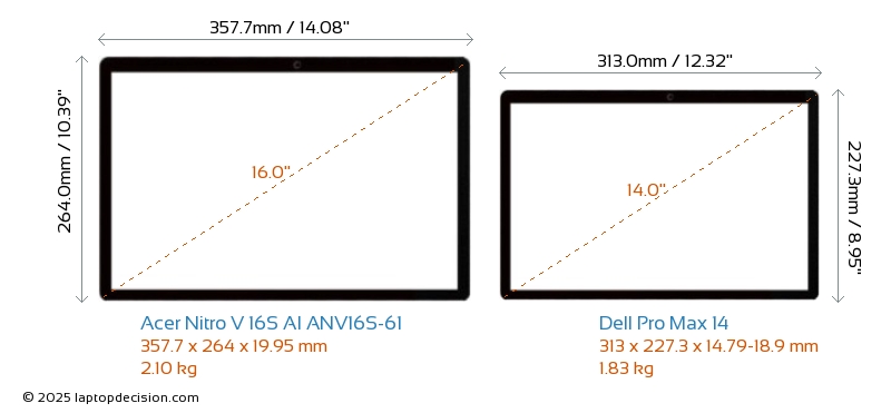 Thunderbolt Pro Max 14 está equipado con un puerto Thunderbolt 4. Nitro V 16S AI ANV16S-61 no tiene puerto Thunderbolt.