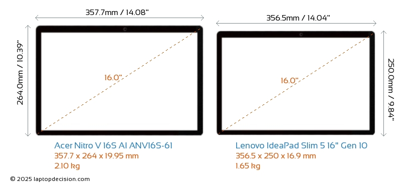 ThunderboltNinguno de los dos Nitro V 16S AI ANV16S-61 ni IdeaPad Slim 5 16" Gen 10 tiene puerto Thunderbolt.