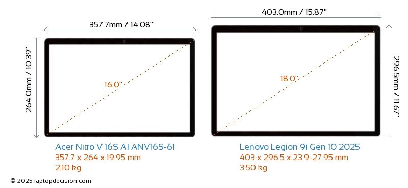 HDMIAmbos Nitro V 16S AI ANV16S-61 y Legion 9i Gen 10 2025 cuentan con un puerto HDMI (1x HDMI 2.1) para conectar a monitores externos.
