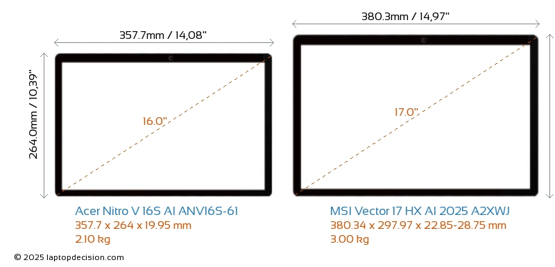 HDMIAmbos Nitro V 16S AI ANV16S-61 y Vector 17 HX AI 2025 A2XWJ cuentan con un puerto HDMI (1x HDMI 2.1) para conectar a monitores externos.