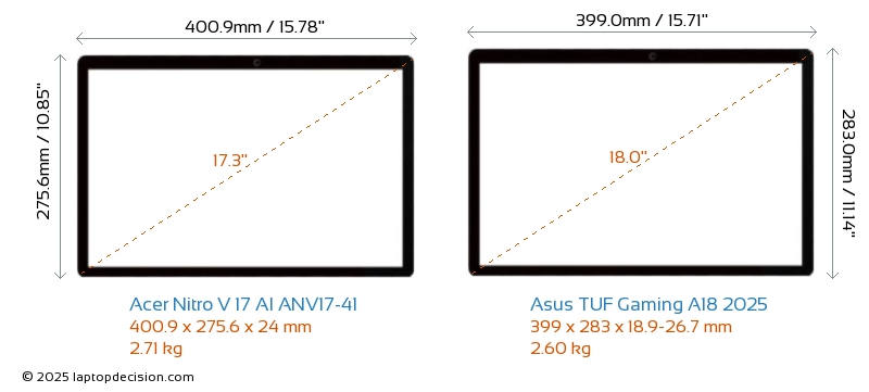 ThunderboltNinguno de los dos Nitro V 17 AI ANV17-41 ni TUF Gaming A18 2025 tiene puerto Thunderbolt.