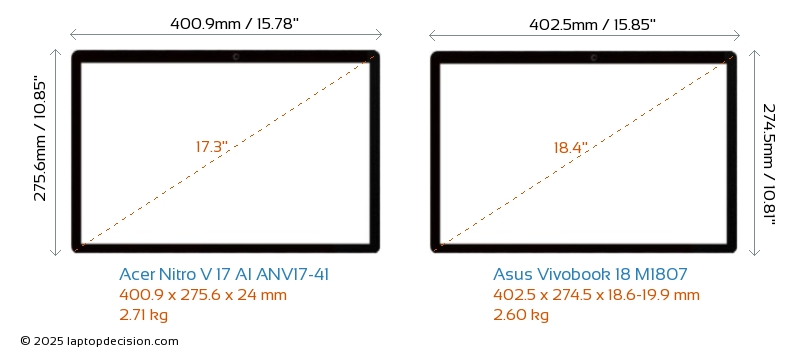 ThunderboltNinguno de los dos Nitro V 17 AI ANV17-41 ni Vivobook 18 M1807 tiene puerto Thunderbolt.
