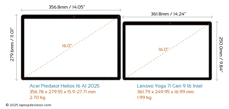 HDMIAmbos Predator Helios 16 AI 2025 y Yoga 7i Gen 9 16 Intel cuentan con un puerto HDMI (1x HDMI 2.1) para conectar a monitores externos.