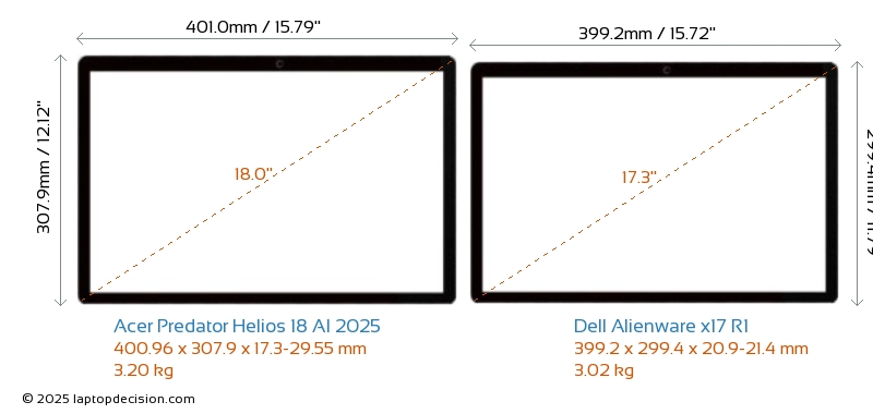HDMIAmbos Predator Helios 18 AI 2025 y Alienware x17 R1 cuentan con un puerto HDMI (1x HDMI 2.1) para conectar a monitores externos.