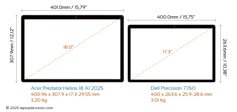 HDMIAmbos Predator Helios 18 AI 2025 y Precision 7760 cuentan con un puerto HDMI (1x HDMI 2.1) para conectar a monitores externos.