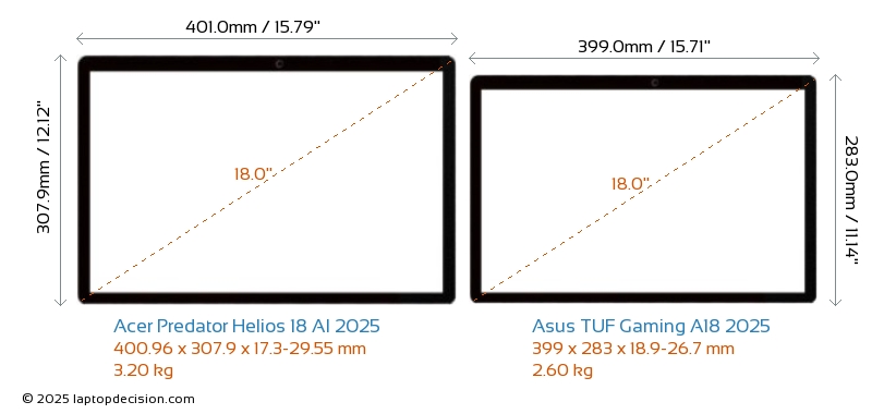 HDMIAmbos Predator Helios 18 AI 2025 y TUF Gaming A18 2025 cuentan con un puerto HDMI (1x HDMI 2.1) para conectar a monitores externos.