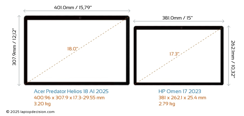HDMIAmbos Predator Helios 18 AI 2025 y Omen 17 2023 cuentan con un puerto HDMI (1x HDMI 2.1) para conectar a monitores externos.