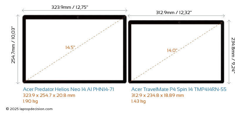 HDMIAmbos Predator Helios Neo 14 AI PHN14-71 y TravelMate P4 Spin 14 TMP414RN-55 cuentan con un puerto HDMI (1x HDMI 2.1) para conectar a monitores externos.