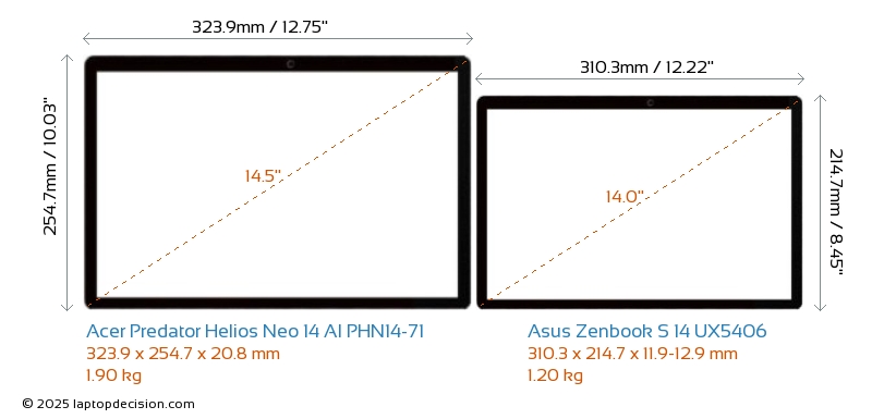 HDMIAmbos Predator Helios Neo 14 AI PHN14-71 y Zenbook S 14 UX5406 cuentan con un puerto HDMI (1x HDMI 2.1) para conectar a monitores externos.