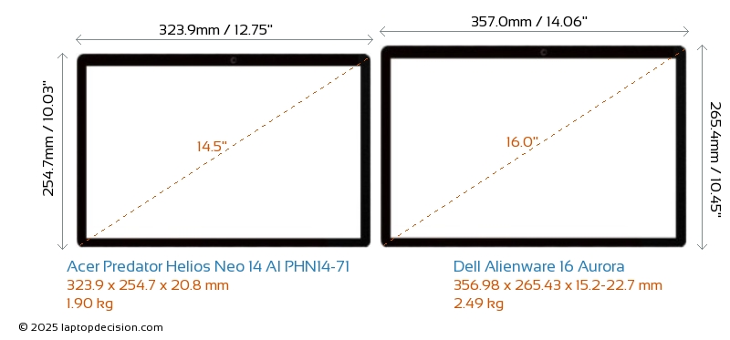 HDMIAmbos Predator Helios Neo 14 AI PHN14-71 y Alienware 16 Aurora cuentan con un puerto HDMI (1x HDMI 2.1) para conectar a monitores externos.