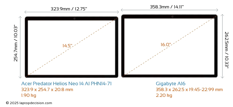 HDMIAmbos Predator Helios Neo 14 AI PHN14-71 y A16 cuentan con un puerto HDMI (1x HDMI 2.1) para conectar a monitores externos.