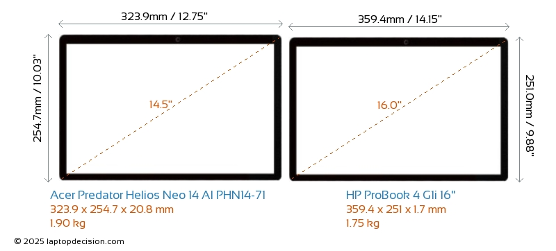 HDMIAmbos Predator Helios Neo 14 AI PHN14-71 y ProBook 4 G1i 16" cuentan con un puerto HDMI (1x HDMI 2.1) para conectar a monitores externos.