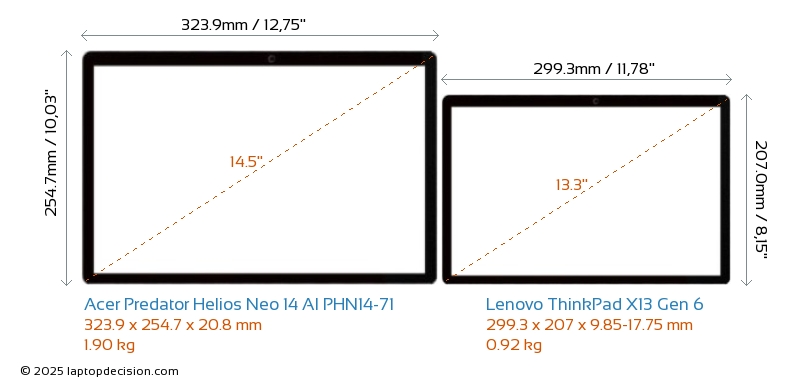 HDMIAmbos Predator Helios Neo 14 AI PHN14-71 y ThinkPad X13 Gen 6 cuentan con un puerto HDMI (1x HDMI 2.1) para conectar a monitores externos.