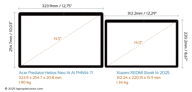 HDMIAmbos Predator Helios Neo 14 AI PHN14-71 y REDMI Book 14 2025 cuentan con un puerto HDMI (1x HDMI 2.1) para conectar a monitores externos.