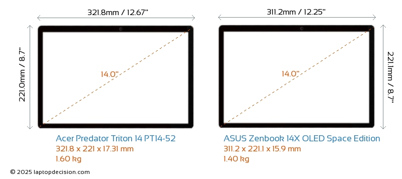 Wifi Predator Triton 14 PT14-52 cuenta con un estándar de Wi-Fi más avanzado v7, proporcionando conexiones inalámbricas más rápidas y fiables en comparación con Zenbook 14X OLED Space Edition (v6E).