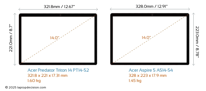 Wifi Predator Triton 14 PT14-52 cuenta con un estándar de Wi-Fi más avanzado v7, proporcionando conexiones inalámbricas más rápidas y fiables en comparación con Aspire 5 A514-54 (v6).