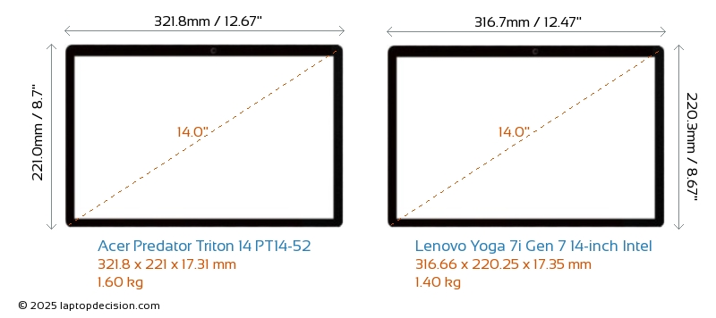 HDMIAmbos Predator Triton 14 PT14-52 y Yoga 7i Gen 7 14-inch Intel cuentan con un puerto HDMI. Predator Triton 14 PT14-52 ofrece 1x HDMI 2.1, mientras que Yoga 7i Gen 7 14-inch Intel ofrece 1x HDMI 2.0.