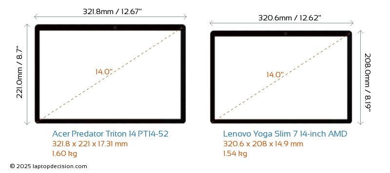 Thunderbolt Predator Triton 14 PT14-52 está equipado con un puerto Thunderbolt 4. Yoga Slim 7 14-inch AMD no tiene puerto Thunderbolt.
