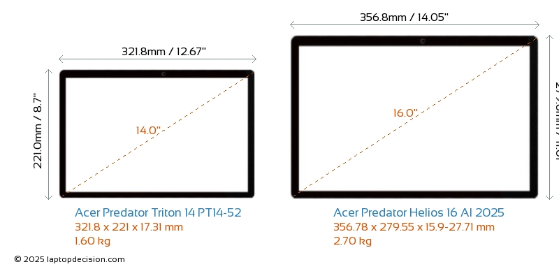 HDMIAmbos Predator Triton 14 PT14-52 y Predator Helios 16 AI 2025 cuentan con un puerto HDMI (1x HDMI 2.1) para conectar a monitores externos.