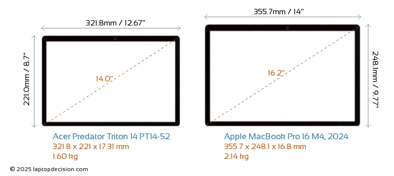HDMIAmbos Predator Triton 14 PT14-52 y MacBook Pro 16 M4, 2024 cuentan con un puerto HDMI (1x HDMI 2.1) para conectar a monitores externos.