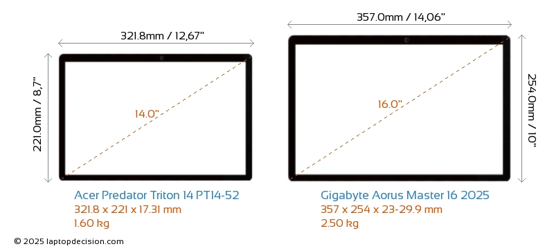 HDMIAmbos Predator Triton 14 PT14-52 y Aorus Master 16 2025 cuentan con un puerto HDMI (1x HDMI 2.1) para conectar a monitores externos.