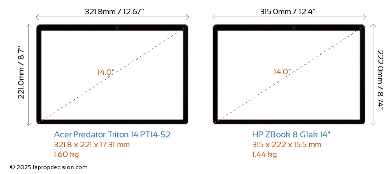 HDMIAmbos Predator Triton 14 PT14-52 y ZBook 8 G1ak 14" cuentan con un puerto HDMI (1x HDMI 2.1) para conectar a monitores externos.