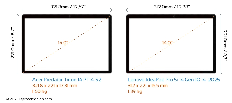 HDMIAmbos Predator Triton 14 PT14-52 y IdeaPad Pro 5i 14 Gen 10 14 2025 cuentan con un puerto HDMI (1x HDMI 2.1) para conectar a monitores externos.