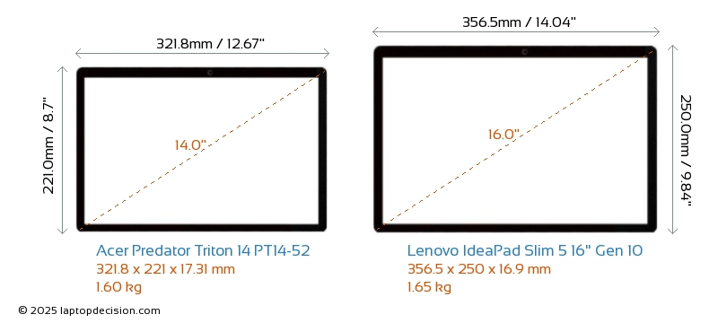 USBAmbos Predator Triton 14 PT14-52 y IdeaPad Slim 5 16" Gen 10 cuentan con 2x USB 3.2 puertos USB-A.Ambos Predator Triton 14 PT14-52 y IdeaPad Slim 5 16" Gen 10 cuentan con 2x USB 3.2 puertos USB Type-C.