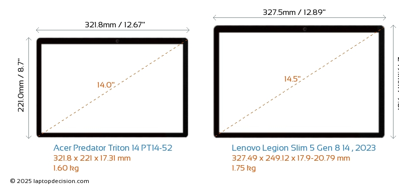 HDMIAmbos Predator Triton 14 PT14-52 y Legion Slim 5 Gen 8 14 , 2023 cuentan con un puerto HDMI (1x HDMI 2.1) para conectar a monitores externos.