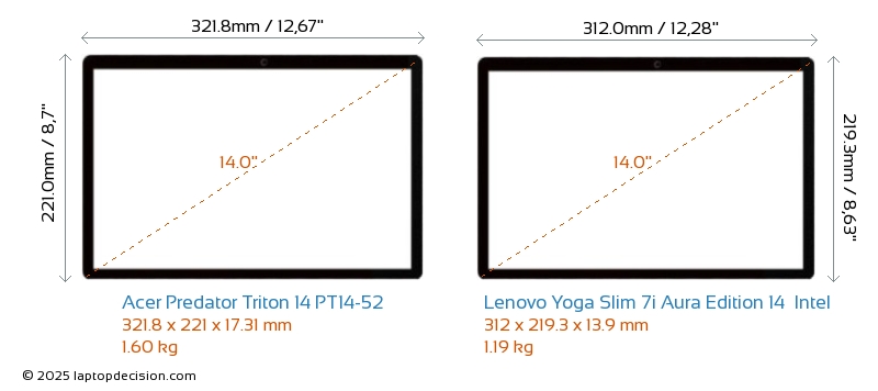 HDMIAmbos Predator Triton 14 PT14-52 y Yoga Slim 7i Aura Edition 14 Intel cuentan con un puerto HDMI (1x HDMI 2.1) para conectar a monitores externos.