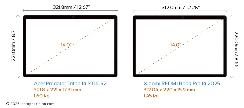 HDMIAmbos Predator Triton 14 PT14-52 y REDMI Book Pro 14 2025 cuentan con un puerto HDMI (1x HDMI 2.1) para conectar a monitores externos.