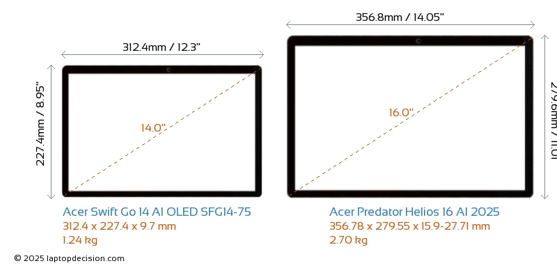 HDMIAmbos Swift Go 14 AI OLED SFG14-75 y Predator Helios 16 AI 2025 cuentan con un puerto HDMI (1x HDMI 2.1) para conectar a monitores externos.