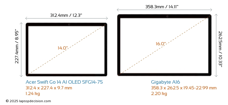 HDMIAmbos Swift Go 14 AI OLED SFG14-75 y A16 cuentan con un puerto HDMI (1x HDMI 2.1) para conectar a monitores externos.