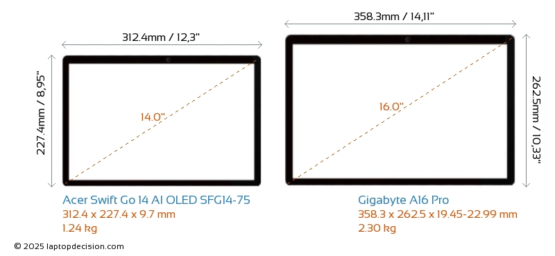 HDMIAmbos Swift Go 14 AI OLED SFG14-75 y A16 Pro cuentan con un puerto HDMI (1x HDMI 2.1) para conectar a monitores externos.