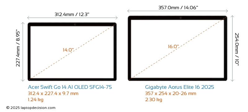 Thunderbolt Aorus Elite 16 2025 está equipado con un puerto Thunderbolt 5. Swift Go 14 AI OLED SFG14-75 no tiene puerto Thunderbolt.