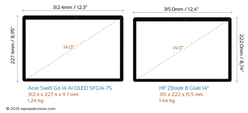HDMIAmbos Swift Go 14 AI OLED SFG14-75 y ZBook 8 G1ak 14" cuentan con un puerto HDMI (1x HDMI 2.1) para conectar a monitores externos.