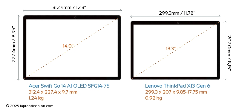 USBAmbos Swift Go 14 AI OLED SFG14-75 y ThinkPad X13 Gen 6 cuentan con 2x USB 3.2 puertos USB-A.Ambos Swift Go 14 AI OLED SFG14-75 y ThinkPad X13 Gen 6 cuentan con 2x USB 4.0 puertos USB Type-C.