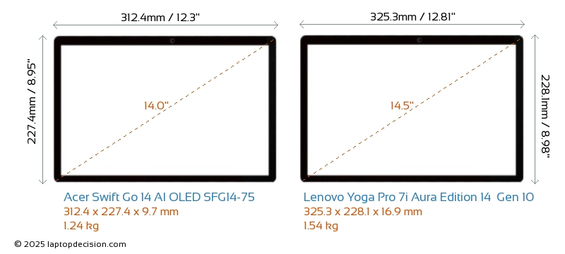 USBAmbos Swift Go 14 AI OLED SFG14-75 y Yoga Pro 7i Aura Edition 14 Gen 10 cuentan con 2x USB 3.2 puertos USB-A.Ambos Swift Go 14 AI OLED SFG14-75 y Yoga Pro 7i Aura Edition 14 Gen 10 cuentan con 2x USB 4.0 puertos USB Type-C.
