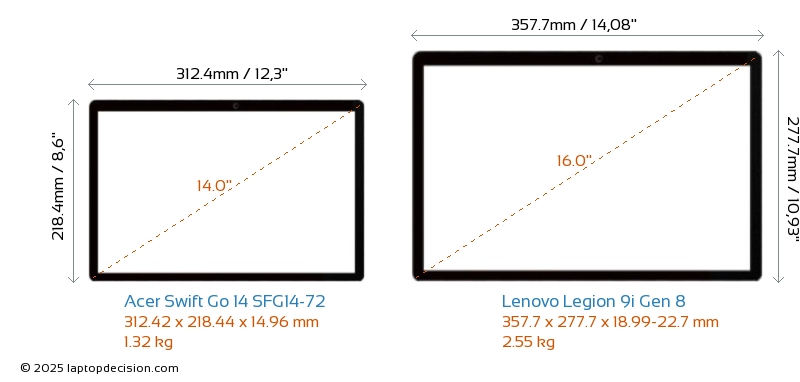 HDMIAmbos Swift Go 14 SFG14-72 y Legion 9i Gen 8 cuentan con un puerto HDMI (1x HDMI 2.1) para conectar a monitores externos.