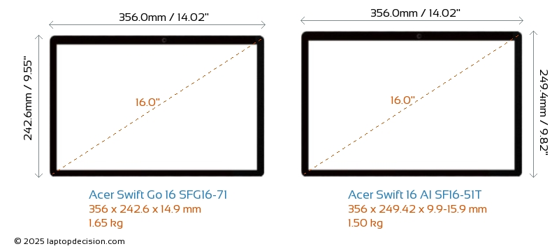USBAmbos Swift Go 16 SFG16-71 y Swift 16 AI SF16-51T cuentan con 2x USB 3.2 puertos USB-A.Ambos Swift Go 16 SFG16-71 y Swift 16 AI SF16-51T cuentan con 2x USB 4.0 puertos USB Type-C.