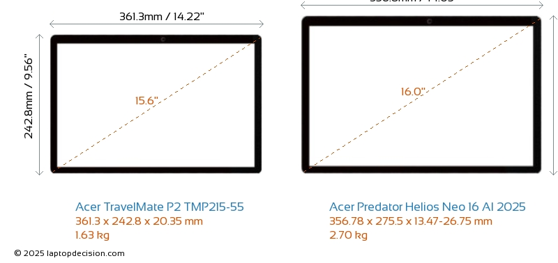 HDMIAmbos TravelMate P2 TMP215-55 y Predator Helios Neo 16 AI 2025 cuentan con un puerto HDMI (1x HDMI 2.1) para conectar a monitores externos.