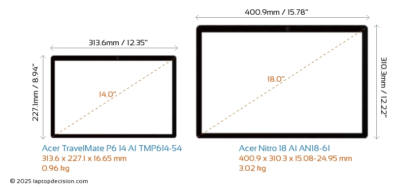 Thunderbolt TravelMate P6 14 AI TMP614-54 está equipado con un puerto Thunderbolt 4. Nitro 18 AI AN18-61 no tiene puerto Thunderbolt.