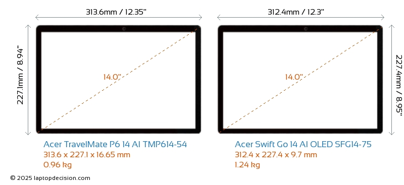 Thunderbolt TravelMate P6 14 AI TMP614-54 está equipado con un puerto Thunderbolt 4. Swift Go 14 AI OLED SFG14-75 no tiene puerto Thunderbolt.