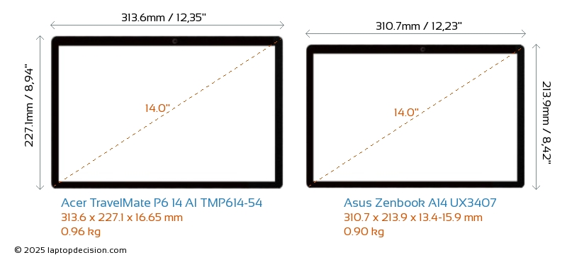 HDMIAmbos TravelMate P6 14 AI TMP614-54 y Zenbook A14 UX3407 cuentan con un puerto HDMI (1x HDMI 2.1) para conectar a monitores externos.