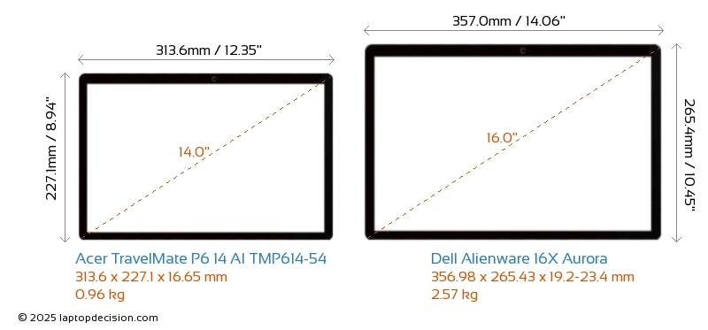 HDMIAmbos TravelMate P6 14 AI TMP614-54 y Alienware 16X Aurora cuentan con un puerto HDMI (1x HDMI 2.1) para conectar a monitores externos.