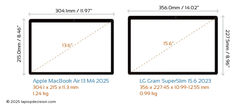 HDMINeither MacBook Air 13 M4 2025 nor Gram SuperSlim 15.6 2023 has an HDMI port for connecting to external monitors. Ninguno de los dos MacBook Air 13 M4 2025 ni Gram SuperSlim 15.6 2023 tiene un puerto HDMI para conectar a monitores externos.