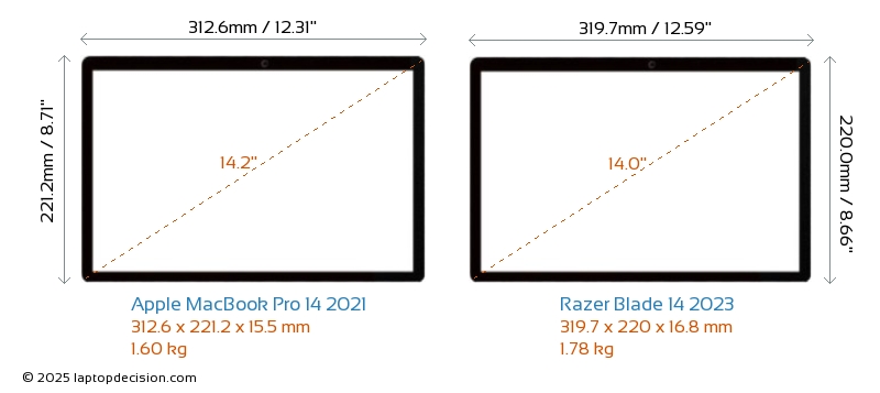 ThunderboltMacBook Pro 14 2021 está equipado con un puerto Thunderbolt 4. Blade 14 2023 no tiene puerto Thunderbolt.