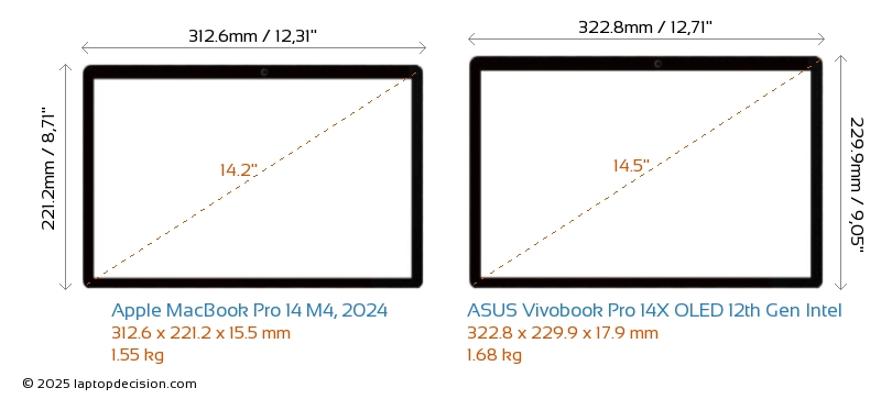 HDMIAmbos MacBook Pro 14 M4, 2024 y Vivobook Pro 14X OLED 12th Gen Intel cuentan con un puerto HDMI (1x HDMI 2.1) para conectar a monitores externos.
