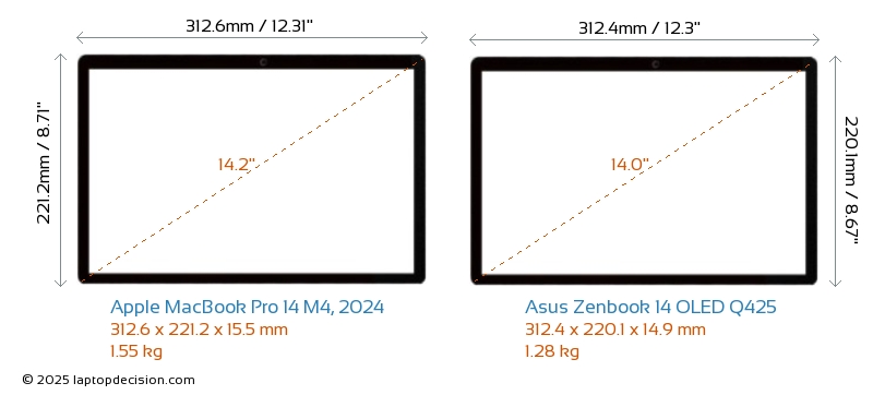 HDMIAmbos MacBook Pro 14 M4, 2024 y Zenbook 14 OLED Q425 cuentan con un puerto HDMI (1x HDMI 2.1) para conectar a monitores externos.