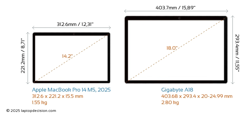 USB A18 está equipado con 3x USB 3.2 puertos USB-A. MacBook Pro 14 M5, 2025 no tiene puertos USB-A.Ambos MacBook Pro 14 M5, 2025 y A18 tienen puertos USB Type-C. MacBook Pro 14 M5, 2025 tiene 3x USB 4.0 puertos USB Type-C, mientras que A18 tiene 1x USB 3.2 puertos USB Type-C.